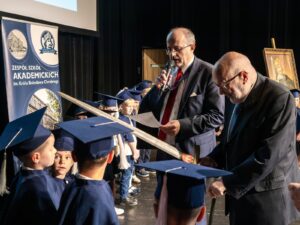 1 września 2025 roku w uroczystej inauguracji roku szkolnego 2025/206, w Zespole Szkół Akademickich w Nowym Sączu, udział wzięła delegacja Towarzystwa Miłośników Ziemi Łąckiej : Jadwiga Jastrzębska , prezes i redaktor „Almanachu Łąckiego” i Jerzy Trzajna , członek zarządu. Delegacja przekazała na ręce dyrektora prof. Bogusława Kołcza List Gratulacyjny z okazji 35-lecia pracy na stanowisku dyrektora i kwiaty. Podczas uroczystości pierwszoklasiści Szkoły Podstawowej zostali pasowani na uczniów, i otrzymali pierwsze legitymacje uczniowskie . Uczniowie, którzy rozpoczną naukę w klasie pierwszej Liceum Ogólnokształcącego zostali także pasowani na uczniów ZSA. Wszyscy nowo wybrani uczniowie, zgodnie z tradycją szkoły, zostali przyjęci do Rodziny Chrobrego. Pasowania „Szczerbcem” dokonał dr. Krzysztof Pawłowski, założyciel Wyższej Szkoły Biznesu NLU w Nowym Sączu, i jej pierwszy rektor, a legitymacje uczniowskie wręczył dr hab. profesor Akademii Nauk Stosowanych w Nowym Sączu, Józef Ciuła.