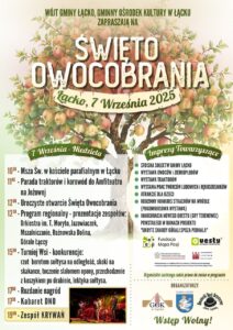 Zapraszam, w dniu 7 września 2025 roku, członków i sympatyków Towarzystwa Miłośników Ziemi Łąckiej i „Almanachu Łąckiego” na Święto Owocobrania w Łącku.